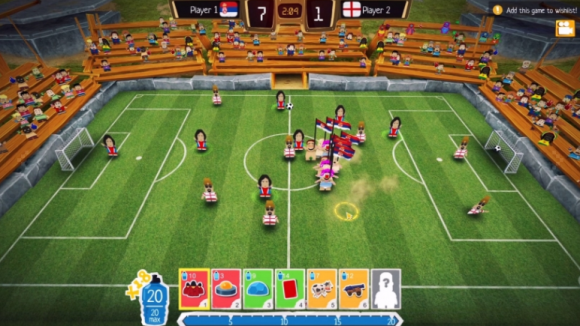 疯狂足球 由在各有特色的球队间举行的高强度和快速(少于 5 分钟)比赛构成。英国人佩戴经典的高顶礼帽,娇小的金发女郎有着卡哇伊的眼睛,吼叫的斯巴达人——可以通过游戏的自定义选项挑选和匹配不同的组合。