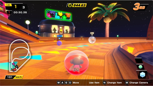 滚动搭乘小猴子的小球冲向终点。本作可玩的关卡数量超过300种。丛林、火山、宇宙等等,可以游玩各种关卡和规则。含有网球、竞速还有台球等等,大量可以大家同乐的派对游戏。系列还首次对应自定义功能。可以游玩自己喜欢的小猴子。