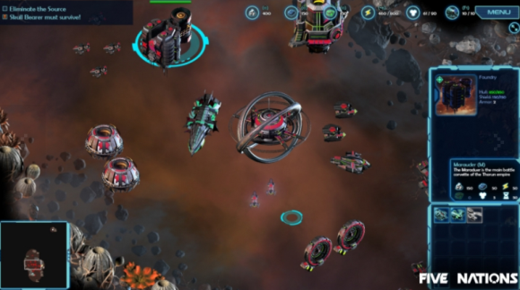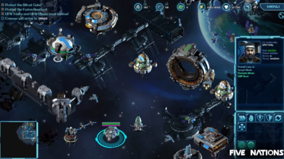 这是一款各方各面都回归(沙丘2000+命令与征服1+星际争霸1+帝国时代1)年代的作品。故事设定上为五个种族的太空争霸(正如其名,five nations)能辨识出来的有人类、机械、虚灵、虫群和一个不太能辩识出来的种族,游戏不大...画面也一般,不过精致的2D美术非常不错...