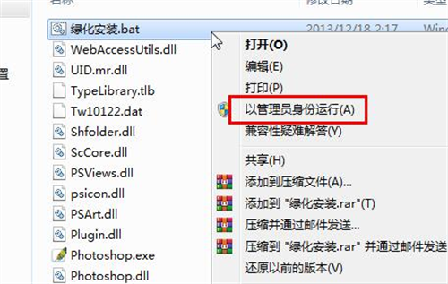 1、下载软件包后,以管理员身份运行【绿化安装.bat】