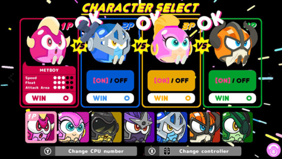 可供4人以内「协同游玩」或「对战游玩」!操作钢盔小子、钢盔少女、钢盔炸弹人、钢盔忍者、钢盔骑士、钢盔维京人、钢盔狙击手等个性丰富的角色,大家一起来游玩「超级钢盔小子!」吧!