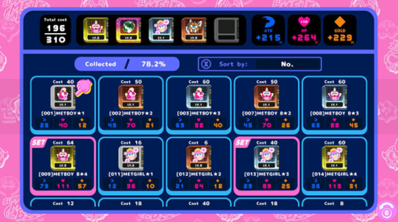 打倒BOSS后能够遇到「饮料贩卖机」,可以在上面购买拥有「子弹巨大化」、「3WAY」等特殊效果的饮料。此外,通过不断游玩获得的点数,可以用来购买强化芯片,装备到身上展开冒险之旅。