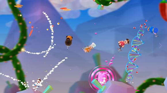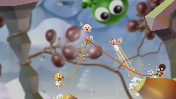 在允许2-16名玩家一同游玩的橡皮筋合作模式中,与你的好友或陌生人绑定在一起。