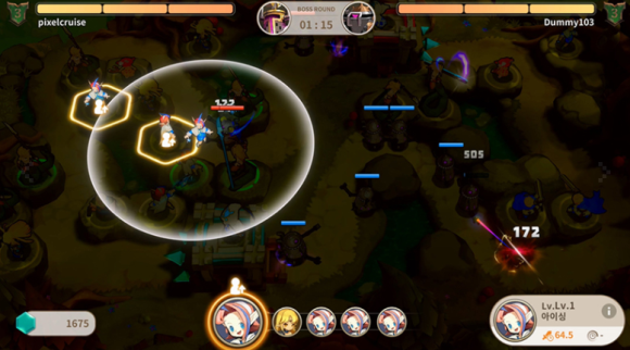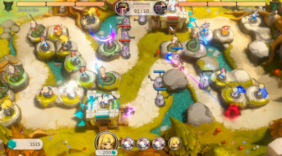 在与对方一对一对战的竞争战中,击败我方战场上的怪物,将其驱赶至对方战场,坚持就是胜利。