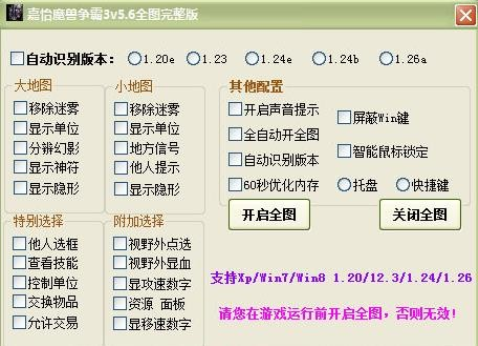 3、智能魔兽全图 支持魔兽1.20e/1.24b/1.24e/1.26版本 智能识别。
