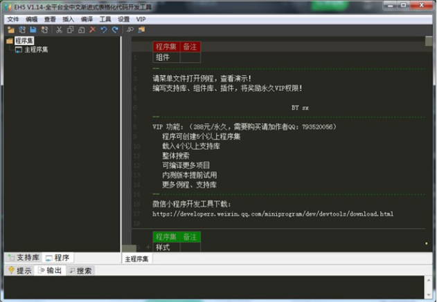 《EH5代码开发工具免费版》是一款全平台全中文渐进式表格化代码开发工具,软件提供了编译功能,让你可以在软件中开发小程序,你可以在软件中创建一个新的开发项目,也可以使用官方支持库设计的应用程序对开发项目进行设置,还可以为应用程序添加相关组件,支持样式设置,设置applet的接口样式,支持脚本设置功能,并立即编辑applet的脚本,只要使用软件的编译器就可以立即创建本地应用程序、网站H5(VUE)、支付宝、百度以及微信小程序等。