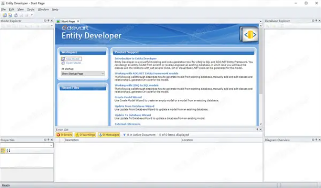 设计实体框架核心模型可视化,并且可通过大量设置获得模型优先和数据库优先支持。