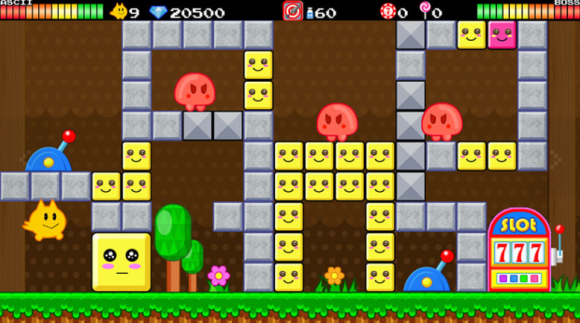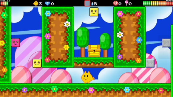 查找隐藏的宝藏箱以升级Ascii的属性(最大hp,mp,生命)。