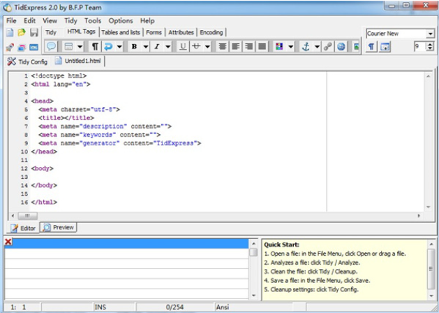 《TidExpress绿色版》是一个Web代码编辑工具,是一个轻量级且易于理解的软件解决方案,它的主要目的是为您提供编辑HTML的能力和最少的工作量,它还为您提供了一个代码优化工具,可以成功地清除其中的一些错误文档,它可以帮助您将文本编辑为可以在网页上发布的代码。编辑文章时,如果要将其发送到网页,则需要使用代码转换将文本内容转换为计算机可识别的代码,转换后,您的文本可以上载到网页,这个tidExpress是专门为HTML代码设计的工具,可以拖动网页文本到软件中进行编辑,可以修改代码,可以编辑文本链接,可以显示代码突出显示,内置专业的文本编辑器和格式优化工具,可可以让您设计的HTML代码轻松发布到网络上。