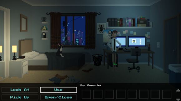 一款关于生活和寻找裤子的经典风格冒险游戏。 我们的主人公越是试图找到他们,事情似乎越来越失控。语气很有趣,但也有点内省,在那种糟糕的早晨让你重新思考你在穿着内衣四处游荡时所做的每一个决定。