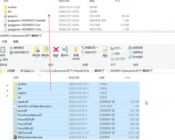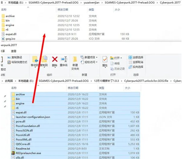 3、然后将解锁补丁内的文件全部复制到游戏根目录下;