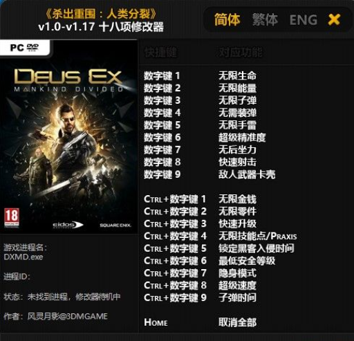 杀出重围人类分裂修改器风灵月影版功能描述: