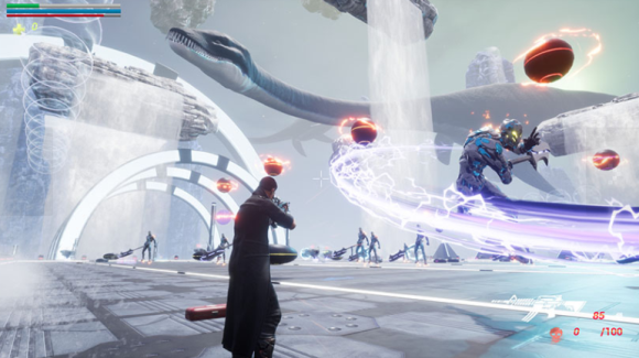 你被外星人绑架了,被他们强制参加了电视娱乐节目来取悦他们的观众,你被困在限定的区域内,必须通过在每个阶段消除一定数量的半机械人来获得自由。你能够使用他们提供的最先进的科技,包括多种枪支和超能力(传送和护盾)。