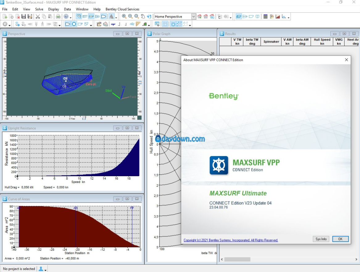《Maxsurf CONNECT Edition 23破解版》是一款相当优秀功能强大的船体模型分析设计软件,这款软件当中有非常多强大而实用的功能和模块,用户们可以随意使用,可以轻松运用这些工具运用与船体建模,相当优秀,最高可达到20多个曲面,并且对于那些客船和大型船舶来说该软件中的Stability模块能够为用户们提供非常简单易用的图形工具,十分的方面,不管是继承的船舱舱室还是编辑器等众多工具功能都是围绕着用户的使用体验来进行设计的,方便用户们能够自定义管理数以千计的破损工况,极大程度上的方面的用户进行工作。