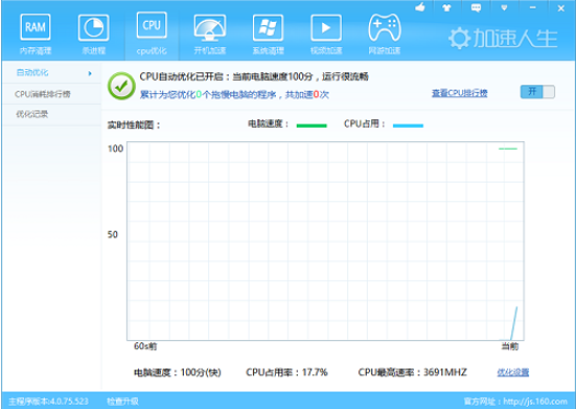 《加速人生免费版》是一款电脑加速软件,帮助您减少不必要的数据消耗,减少网络占用,可以帮助用户清理一些不相关的进程,给你带来最流畅的电脑操作,能节省内存和cpu资源,速度更流畅,帮助用户查看各个应用占用的网速,减少不必要的网速占用,并且这款软件可更流畅地观看视频,让您在看网页、看视频、打游戏、还可以优化电脑系统,下文件时,让你的系统运行得更干净、更快。