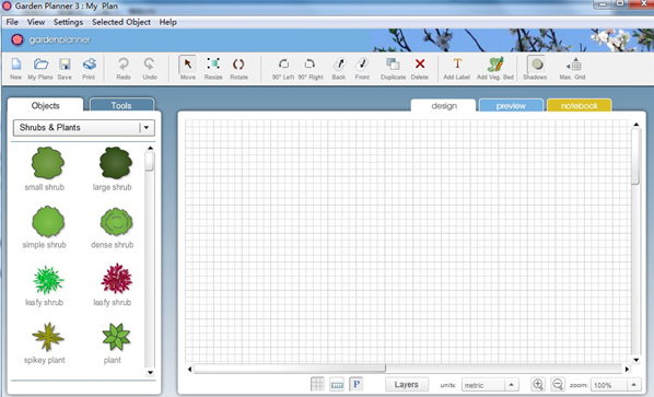 4、这款软件可使用各种通用植物形状来设计您的花园,因此您不需要成为植物学家来使用它。