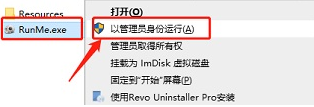 1、将本站提供的文件下载解压,以管理员的身份运行【RunMe.exe】。
