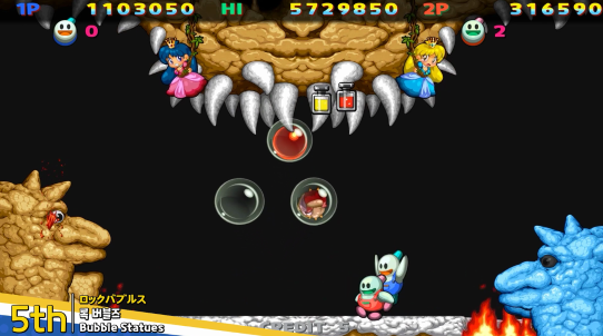 另外,还有 " 怪物挑战 " 模式,玩家可以选择游戏中的怪物作为可操作角色,这样就扩大了《雪人兄弟》的可玩性。每个怪物都有着专属的能力,每个怪物的操作方法也有所不同。