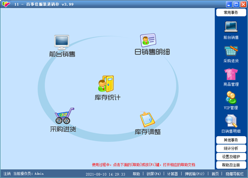 支持服装店面的进货、销售、收银、库存、财务、VIP会员制等各服装店业务的操作管理和多种形式的统计分析。