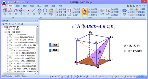 它可以动态度量坐标、长度、角度、面积、体积等,并根据度量结果进行表达式求值。内置变量及函数类型丰富,功能强大。可以迅速判断点线面位置关系。
