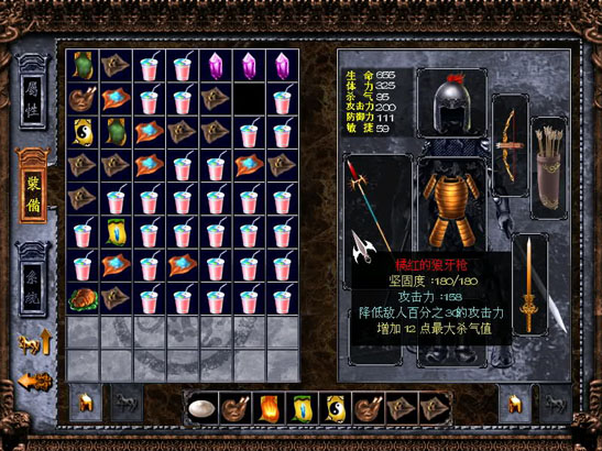 3、在第一次打倒吕布后,就可得到方天画戟,而在同一版打小卒时应可拾到白虎画戟,过版后进入城市,马上去找卖武器的人,它会有朱雀画戟卖,买它两把吧,根据下面方法到隔邻的人炼化,可得化影戟啊。化影戟再加上其他物品,可得到龙胆枪。具体炼化方法:白虎+朱雀=青龙,青龙+朱雀=浑元,浑元+方天=化影,化影+紫水晶+白虎之魂+龙卷风笺=龙胆枪(这是最早可得到的方法)