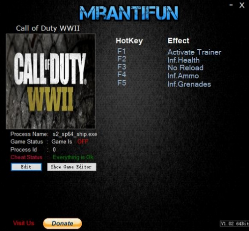 使命召唤14修改器MrAntiFun版按键操作描述: