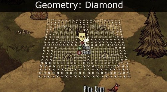 饥荒 必备mod之几何建筑MOD;使用本MOD后可方格种植作物,建筑等,可以建的很整齐,简直强迫症福音。