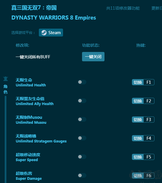 真三国无双7十一项修改器 绿色版软件截图