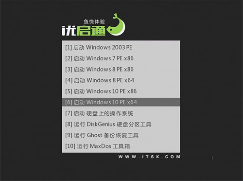 3、进入优启通启动菜单选择界面,选择启动windows 10 PE x64,回车确认。