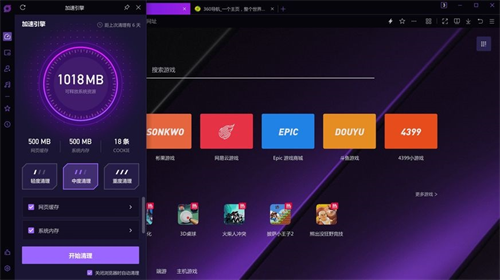 三种清理模式,清除浏览器缓存、释放内存占用,让游戏体验更流畅