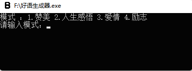 使用方法很简单,单文件打开直接运行,打开之后,选择不同模式,比如1.赞美,那就按数字1,然后按回车键。