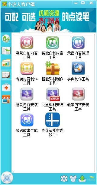 - 分享交流:客户端提供网络资源平台,让用户可以自由的分享自制的点读资源。