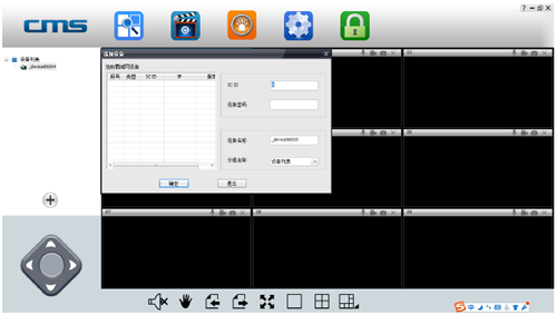 第二步、局域网内会自动搜索,让您添加客户端,如果没有搜索出来,建议手动添加,远程和局域网使用都是采用这个方法;点击+号,添加摄像头,输入摄像头ID号和密码即可;