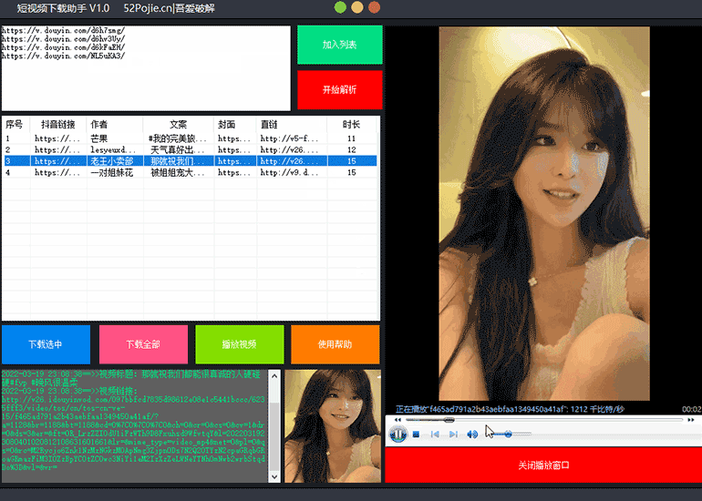 短视频下载助手破解版是吾爱破解搬运过来的软件,主要用来下载各个短视频网站的视频。比如新浪微博的短视频、抖音短视频等等。可以实现批量化的下载视频的方式。