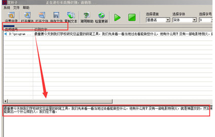 字体识别完成后,会有不少的小错误,这时你可以选择手动修改部分文字,通过上方的播放、暂停按钮控制声音的播放,以检查文字错误。