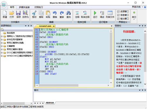 - 方便练习资源导航栏中的“简单的入门程序实例”、“DOS汇编实例源程序”、“WINDOWS汇编实例源程序”中的程序。