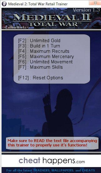 【中世纪2全面战争修改器3DM版】是热心网友分享的中世纪2全面战争修改工具,能够实现6个大属性的修改,提供了无限量的金币金钱,无限量的士兵单位让你分分钟成为最强大的君王。