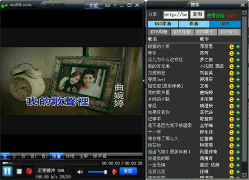1、wo99伴奏盒有10万首优质带歌词立体声原版伴奏