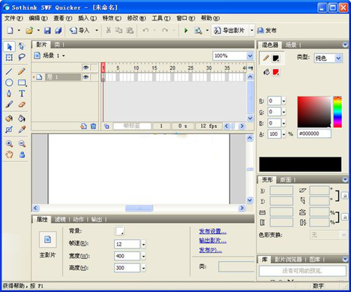 可以导入SWF影片 :支持导入*.swf格式的Flash影片兼容Flash v4,v50,v6或者v7制作的Flash影片,完全支持动作脚本使用ActionScript1.0或者2.0中编写的动作脚本可被解析并在动作面板中显示。