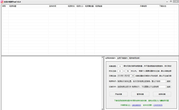 《全民小视频Tool免费版》是一款百度全民小饰品采集工具,具有非常简洁的用户界面,使用简单,支持全民小视频热门视频采集下载,让你可以一次性下载大量的全民小视频平台的视频,支持多线程采集多线程下载,多线程下载更加的快速,可以在短时间快速采集和下载大批量的视频,下载效率更快,可以自定义多线程数量,当然数量不是自由无限制设置,速度也不是无限制快的,需要自己试,支持视频过滤功能,可以支持视频时长过滤采集,发布日期过滤下载等,可以过滤掉不需要的视频,下载的视频都是你需要的,快来体验吧。