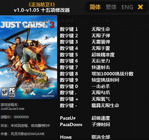 《正当防卫3》修改器功能说明