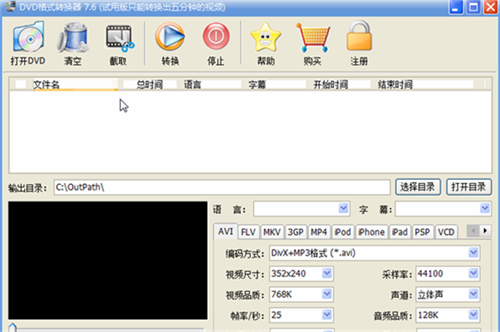 DVD格式转换器破解版是一款视频格式转换工具,它拥有优秀的格式转换技术,可以帮助用户将DVD格式进行转换,能够转换为MP3、MP4等主流媒体格式,而且转换过程不会损坏文件内容。DVD格式转换器免费版还具有编辑功能,可对文件进行截取,让用户轻松截取需要的片段。DVD格式转换器破解版支持用户对文件的质量、尺寸、音频比特率等属性进行修改,使其属性更符合用户的使用需求,更好的在本地播放器中进行播放。