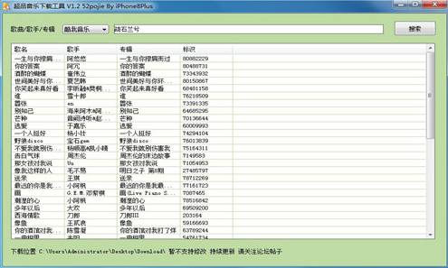 1、下载解压,无需安装,双击"超品音乐免费下载工具V1.2.exe"即可运行,同时该版本打开时默认会为用户显示出酷我当日热门歌曲;