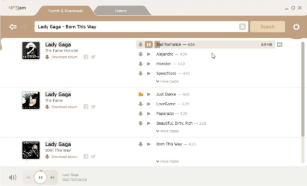 在一个地方搜索,预览和下载音乐,可从下载历史记录中收听已保存的曲目,MP3jam的组织方式很简单,即使你的奶奶也可以下载MP3。
