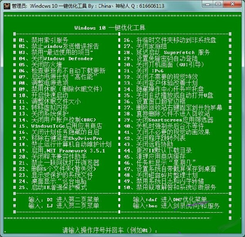 输入用户想要的服务的标编号即可完成系统优化