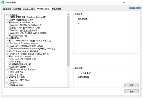 3、DISM管理器可以随意删除系统功能(仅6.2以上),即使在脱机模式