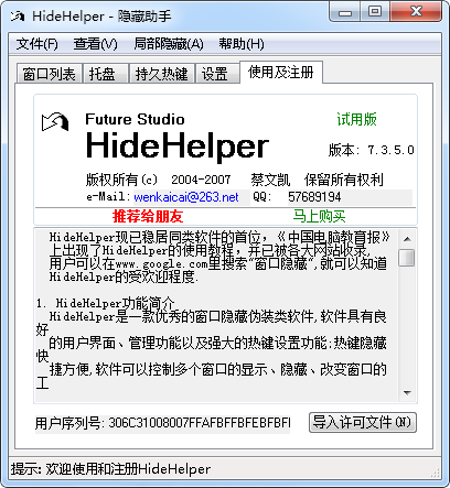 HideHelper-窗口隐藏助手(隐私保护) 6.2.3破除30次限制2K,XP补丁;