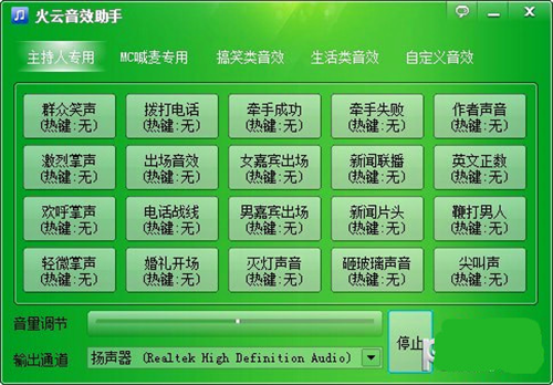 火云音效助手是一款能够自定义音效的主播必备神器。能够为网络主播们提供多种音效选项,列如出场时的音效,烘托气氛的音效等等,设置之后,只需一键,便可完美呈现。