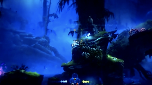 3、能量灵珠:一般击打掉地面上的蓝色植物或者击破敌人获取,蓝色植物会在一定时间内反复生长,可用回复奥里的能量