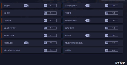 3、开启修改器各主初始项再使用各子修改项[无主初始项则不用开启][主初始项:如开启...修改]。